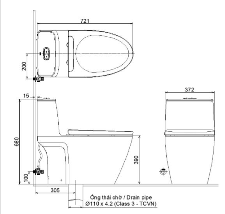 Thông số kỹ thuật Bồn cầu 1 khối INAX AC-902VN Aqua Ceramic - AC902VN