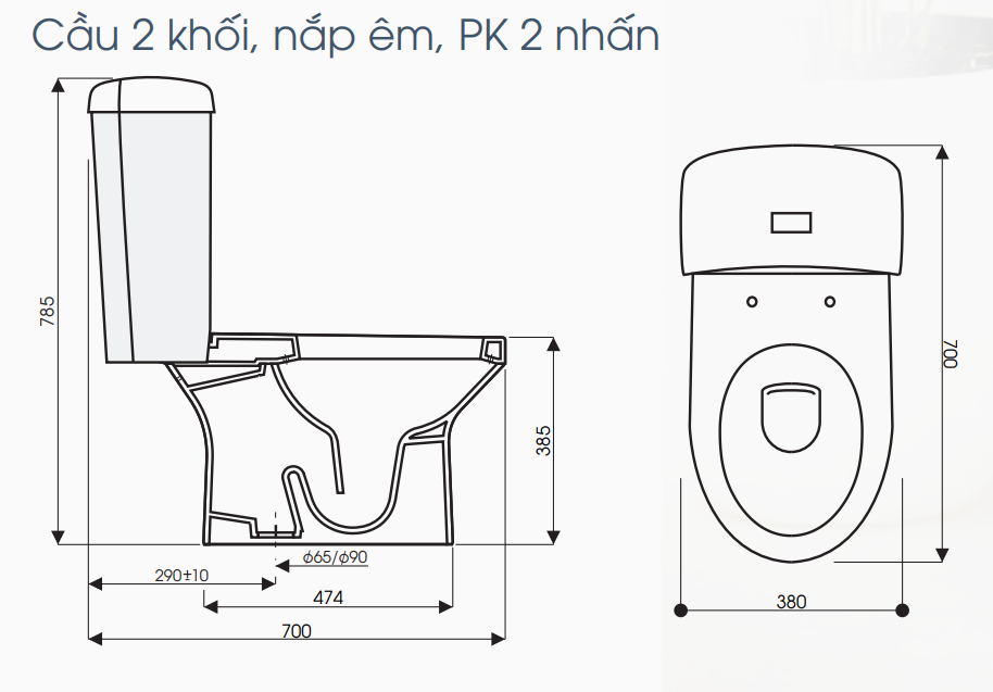 - Bàn cầu 2 khối. Nắp rơi êm
