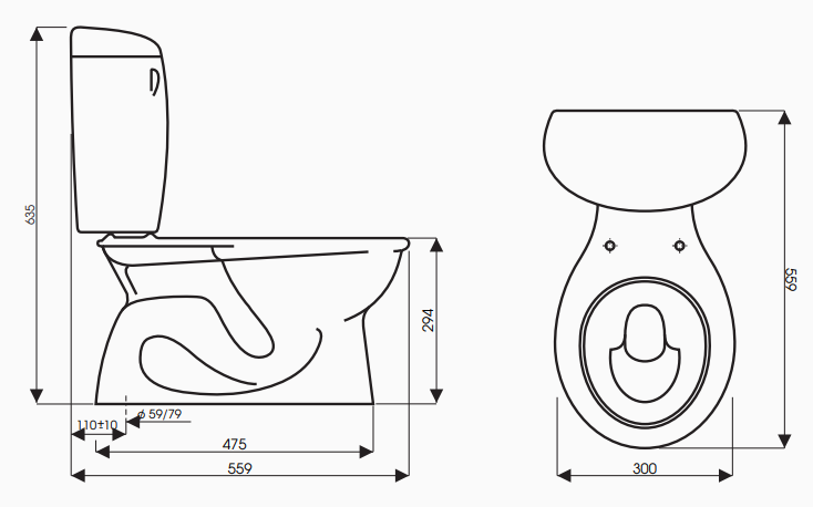 - Bàn cầu 2 khối. Nắp rơi không êm