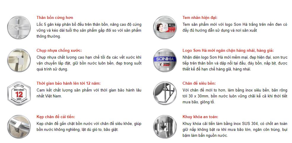 Đặc điểm Bồn nước Inox 700 lít đứng Sơn Hà I304 (700l)