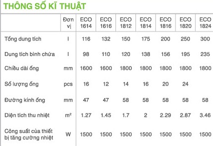 Thông số Máy nước nóng năng lượng mặt trời Ariston 300 lít