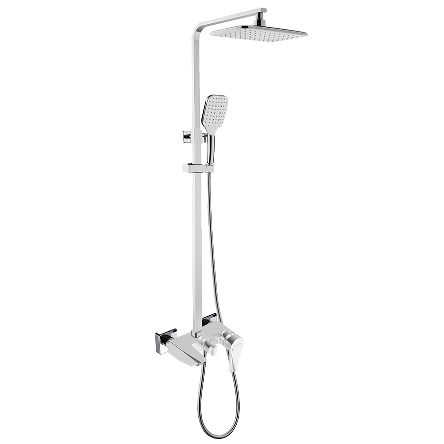 Cấu tạo cơ bản của bộ sen tắm đứng bao gồm : thân sen tắm được bắt cố định trên tường, bát sen tròn hoặc vuông, tay sen tắm, van điều chỉnh chế độ nóng lạnh của nước